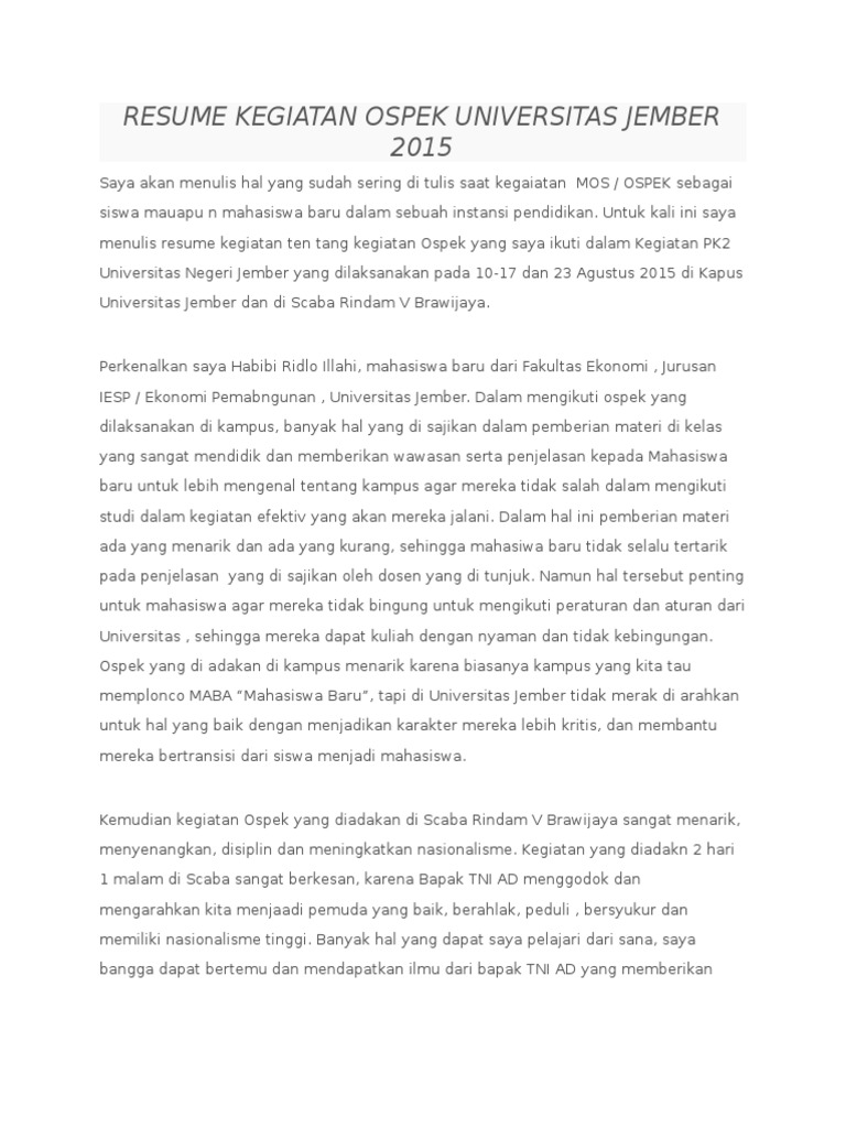 Koleksi 8 Contoh Resume Kegiatan Ospek